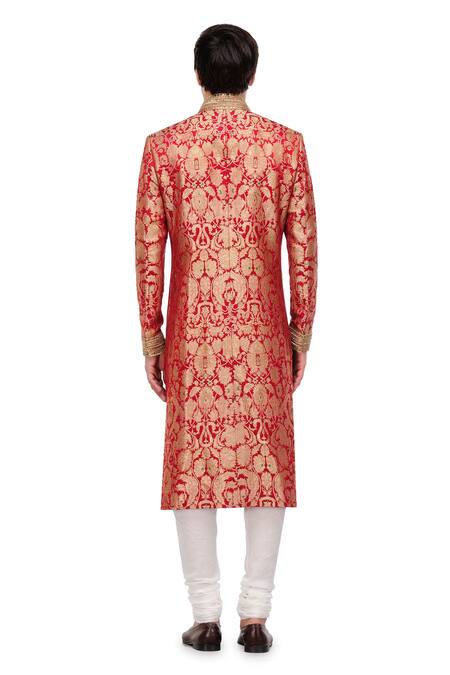 Buy_A!A By Abrar Ali_Wine Pu Woven Floral Motifs Pure Silk Brocade Sherwani_at_Aza_Fashions