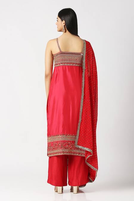 Pink Kurta Pure Silk Hand Embroidered Marodi Sweetheart Neck Palazzo Set