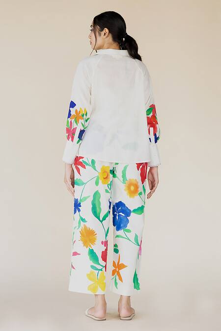 Off White Muslin Bloom Hand Painted Wide Legged Pant