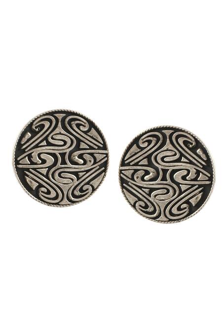 Buy_Palace Of Silver_Silver Plated Puzzle Round Ear Studs_at_Aza_Fashions