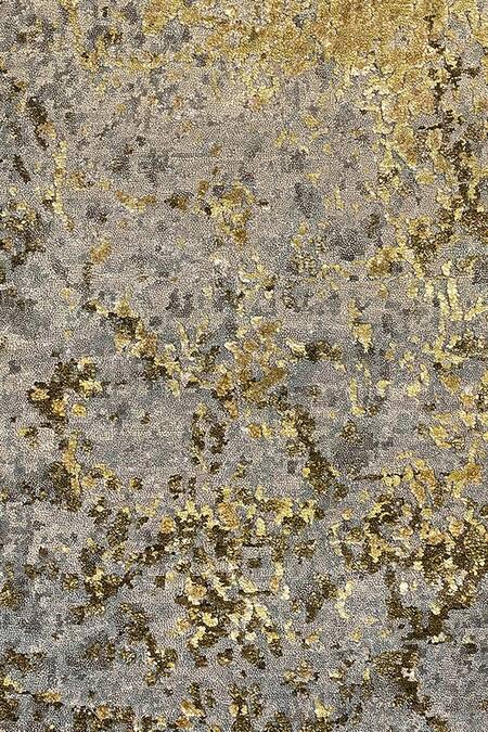 Light grey, gold & green rectangular-shaped handcrafted carpet with hand knotted technique & cut pile finish with embossed pattern.