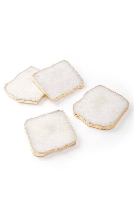 White Quartz Stone Coaster Set Of 4