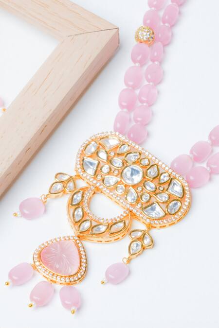 Buy_Queens Jewels_Pink Stones Geometric Pattern Embellished Necklace Set_at_Aza_Fashions