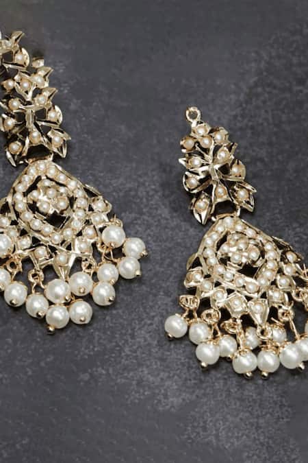 Gold Plated Stones, Pearls Toned Embellished Earrings
