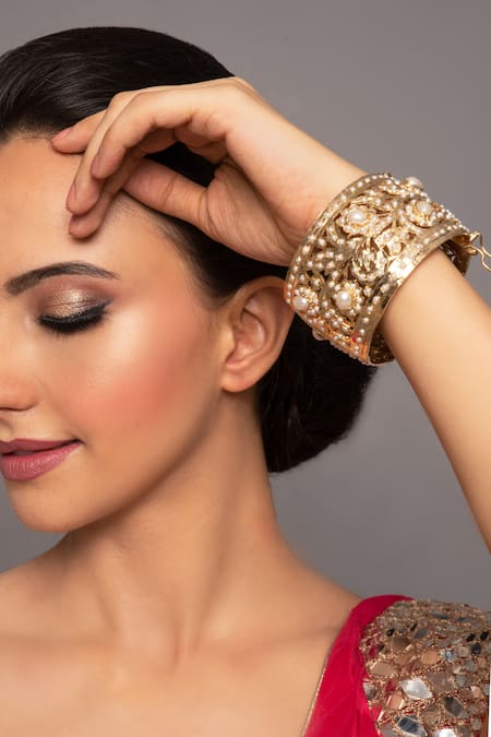 Floral motifs with white jadau stone embellishments, Openable design for easy wear