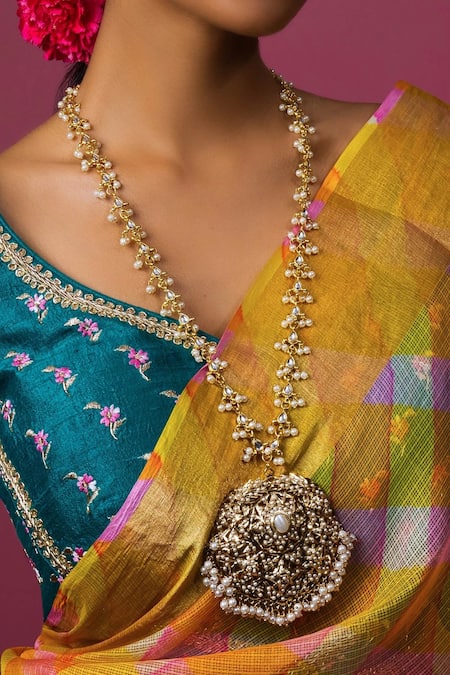 White Jadau Stone Embellished Pendant Necklace