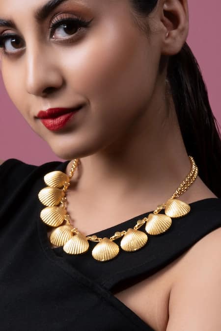 Seashell drop pattern design, 18k gold plating, Chain link detailing