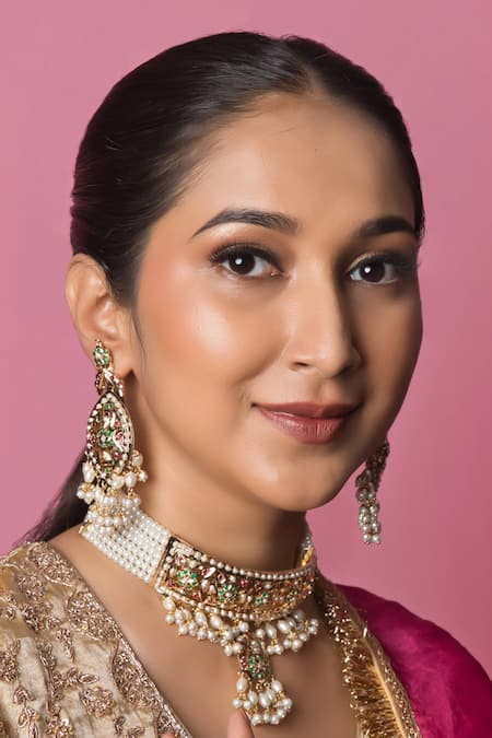 Multi Color Pearls, Stones, Beads Sharmeen Jadau Choker Set