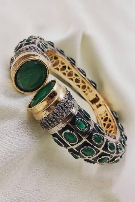 Carving details on the bracelet, Green stone embellishments, Openable design for convenience