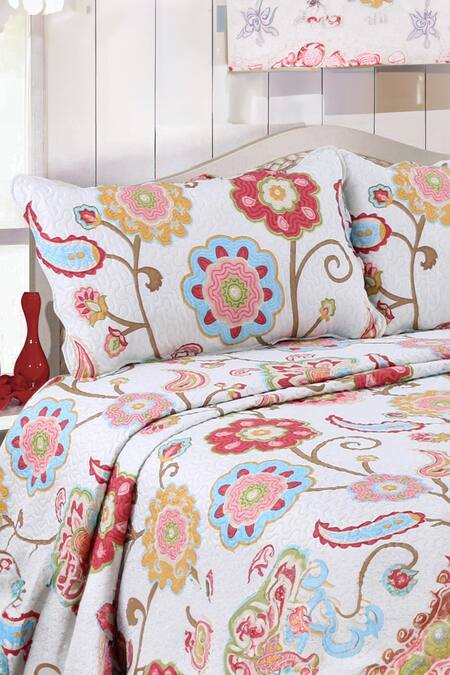 Multi color quilt with all over floral pattern. Comes along with matching set of 2 pillow covers.
