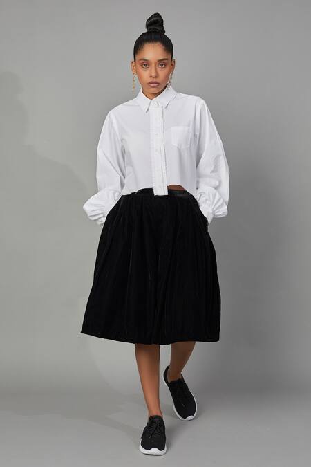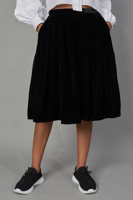 Buy_Quod_Black Velvet Skorts_at_Aza_Fashions
