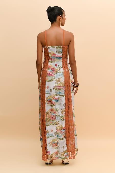 Buy_R. Y By Rishi And Vibhuti_Multi Color Crepe Square Neck Cityscape Print Maxi Dress_Online_at_Aza_Fashions