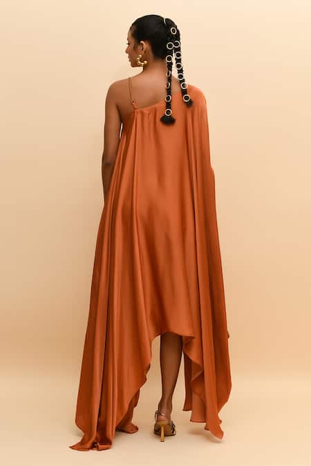 Orange Modal, Silk One Shoulder Tan Draped Dress