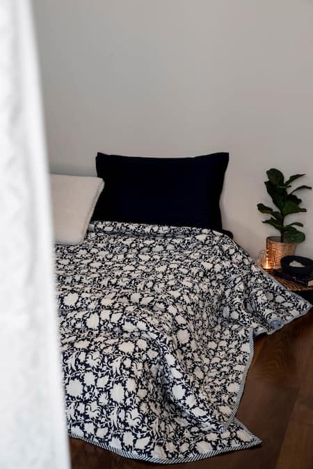 Azo-free dye pigment block printing, Suitable for all seasons, Dimensions L x B (inch):, Double: 90 x 108, Single: 90 x 60, Weight (kgs):, Double: 1.5, Single: 1.2, Note: Only the quilt shown in the image is being sold