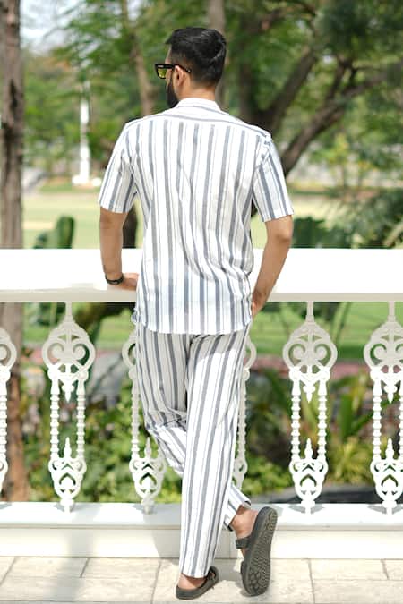 Buy_RAAS LIFE_White Cotton Blue Stripe Coord Set