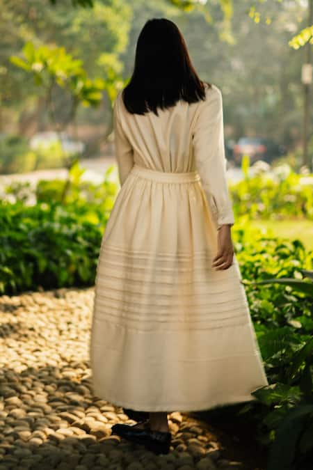 Faggoting detailing along the pintucks, Elasticated waistband for a relaxed fit