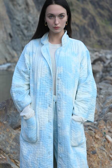 Buy_RAAS LIFE_Blue Cotton Collared Himani Ben Tie-dye Pattern Trench Coat _Online_at_Aza_Fashions