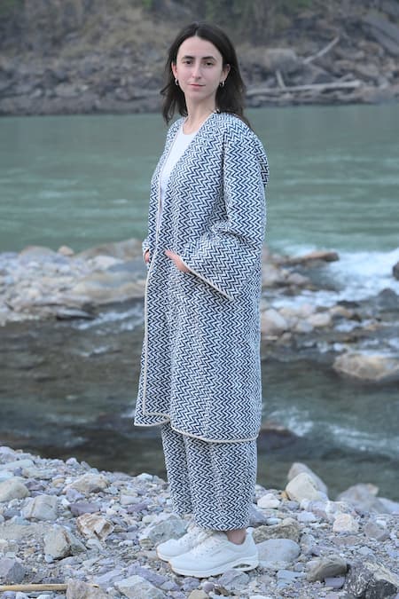 Buy_RAAS LIFE_White Cotton Embroidery Open Neck Neelima Ben Block Print Jacket _at_Aza_Fashions
