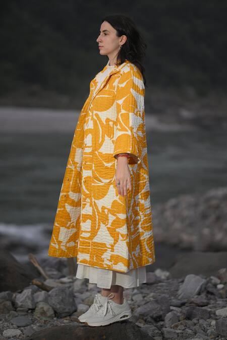 Buy_RAAS LIFE_Yellow Cotton Embroidery Collared Peedi Ben Kantha Jacket _Online_at_Aza_Fashions