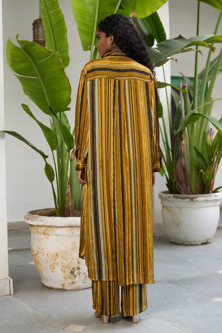 Multi Color Velvet Collared Selena Striped Print Tunic With Pant