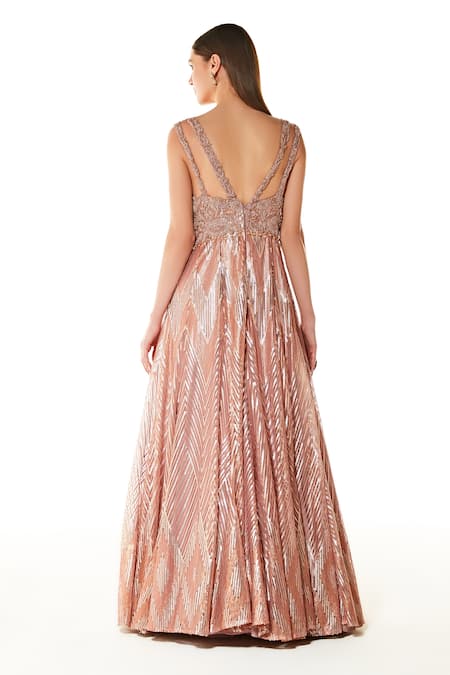 Floral embroidery on the bodice, Bead drops on the waistband, Chevron pattern sequin work