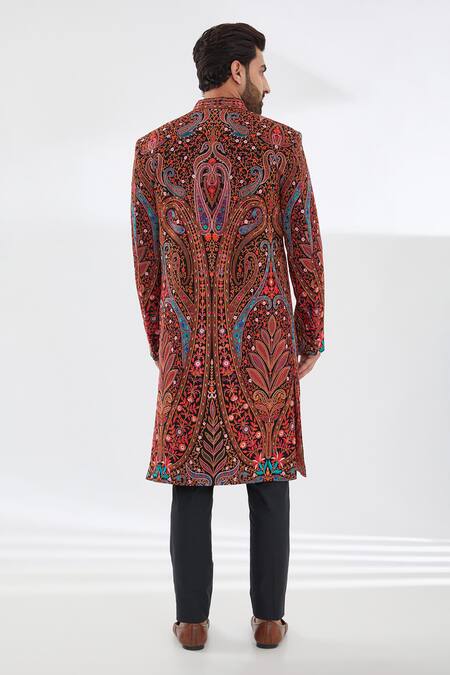 All over azalea bloom resham embroidery, Mandarin collar design, Full sleeves