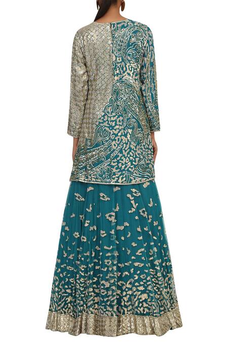 Buy_Rabani & Rakha_Blue Net, Chiffon Round Embellished Kurta Lehenga Set_Online_at_Aza_Fashions