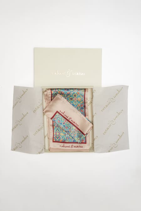 Multi Color Floral Mandala Print Pocket Square And Neck Stole Gift Box - Set Of 2
