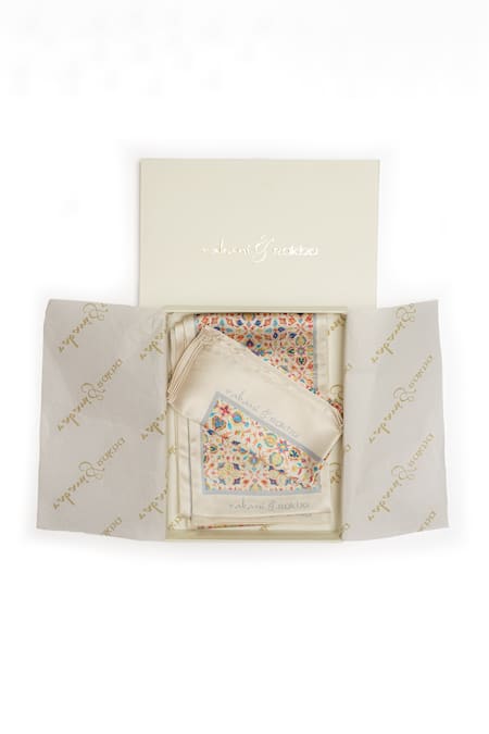 Multi Color Floret Mandala Print Neck Stole And Pocket Square Gift Box - Set Of 2