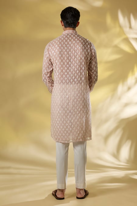 Blush pink kurta featuring thread and sequin work. Accompanied by matching pants.