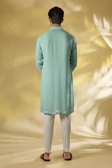 Pale blue kurta featuring thread and sequin work. Paired with matching pant.