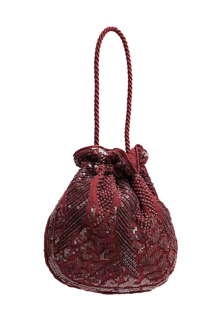 Red potli bag featuring all-over sequins and cutdana hand embroidery