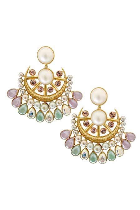 Gold Plated Pearl Bella Crystal Chandbalis