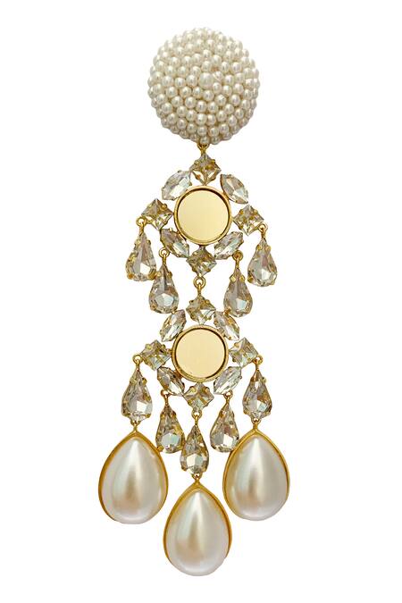 Gold Plated Crystals, Pearls Sitara Tiered Danglers
