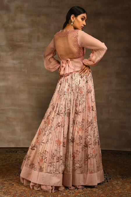 Buy_Radhika & Raghav_Pink Tulle, Chiffon And Silk Chanderi Sequin & Floral Print, Lehenga & Top Set_Online_at_Aza_Fashions
