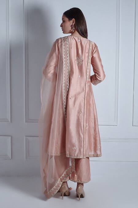Pink Silk, Chanderi, Organza Embroidery, Medina French Fleur Anarkali Set
