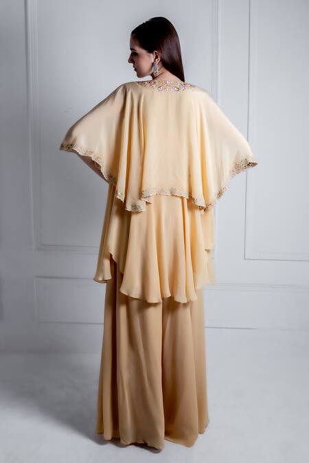 Gold Georgette Embroidery Thread Cape Open Mia Border Sharara Set