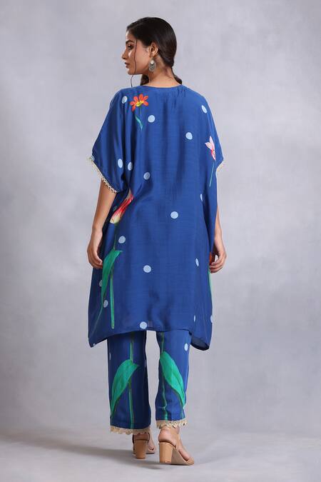 Buy_Radhika Jindal_Blue Cotton, Silk Lace V-neck Embroidered Anti-fit Kurta Set_at_Aza_Fashions