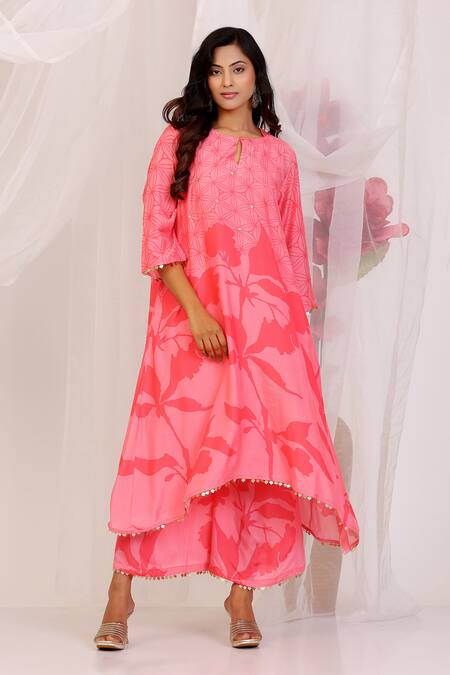 Buy_Radhika Jindal_Pink Cotton, Silk Keyhole Neck Designer Kurta Set With Slip_at_Aza_Fashions