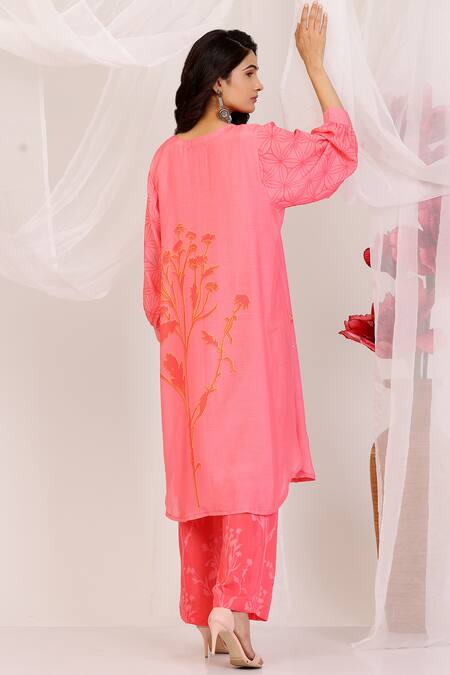 Buy_Radhika Jindal_Pink Cotton, Silk Sequins, Embroidery Round Designer Salmon And Coral Kurta Set_at_Aza_Fashions