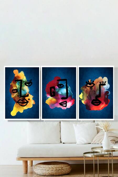 Multi Color High Quality Canvas Paper Digital Abstract Face Wall Art - Set Of 3