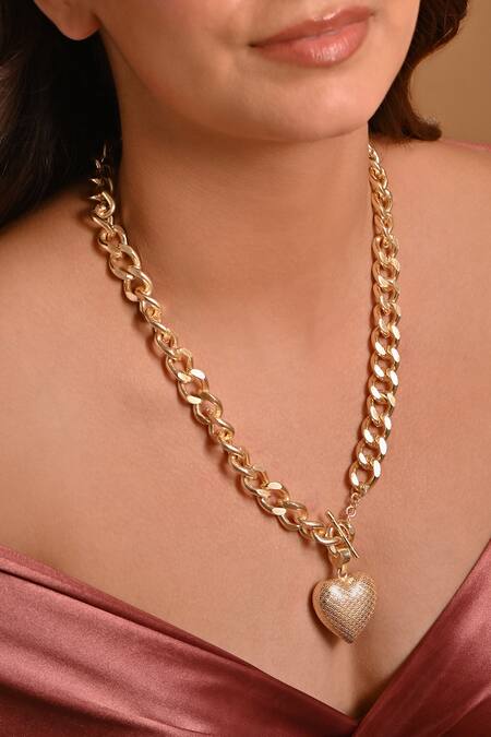 Textured heart center motif, Chunky chain link design, Hook closure for secure fit