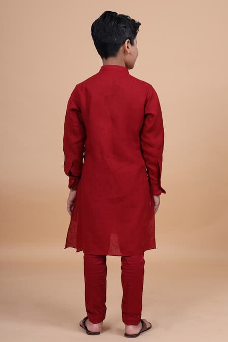 Shop_Raghavendra Rathore Blue_Red Cotton, Linen Shirt Style Kurta _Online_at_Aza_Fashions