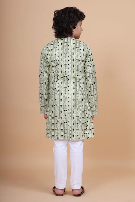 Beige cotton kurta featuring an all-over abstract print and full sleeves