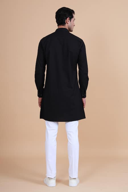 Buy_Raghavendra Rathore Blue_Black Cotton Plain Mandarin Collar Kurta _Online_at_Aza_Fashions