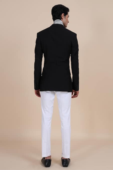 Buy_Raghavendra Rathore Blue_Black Wool Notched Lapel Jacket _Online_at_Aza_Fashions