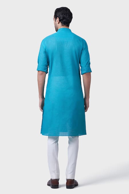 Thread embroidery detailing throughout the kurta.