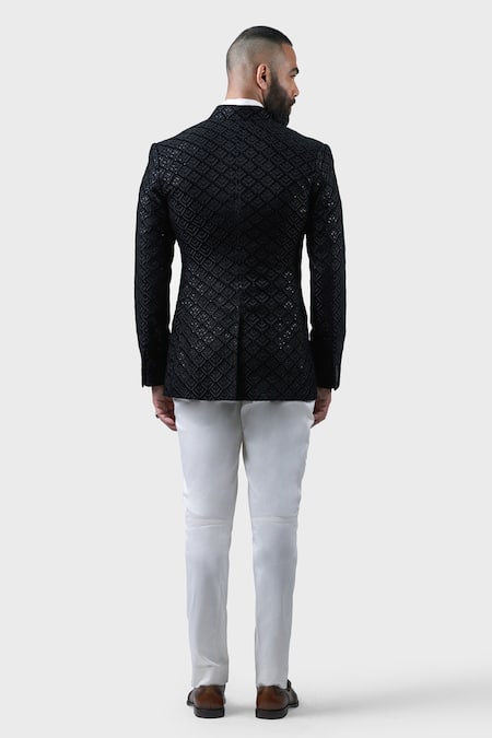 Black Silk Embroidery, Sequins Foliage Motif Bandhgala