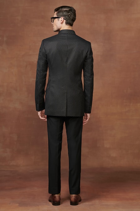 Black Wool Zari Gilded Grandeur Pipe Work Bandhgala