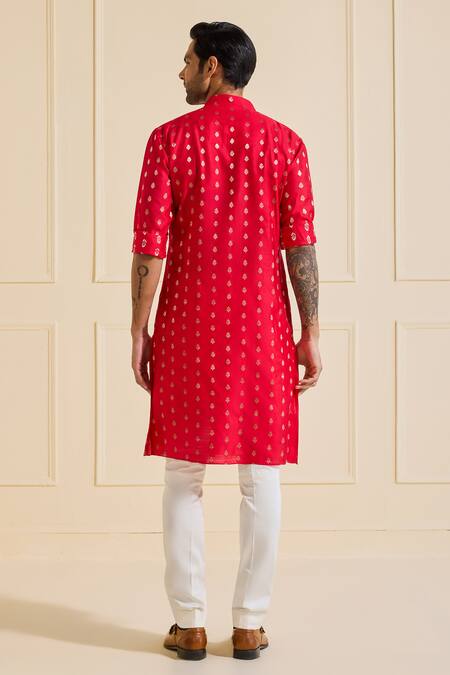Red Silk Embroidery Designer Kurta